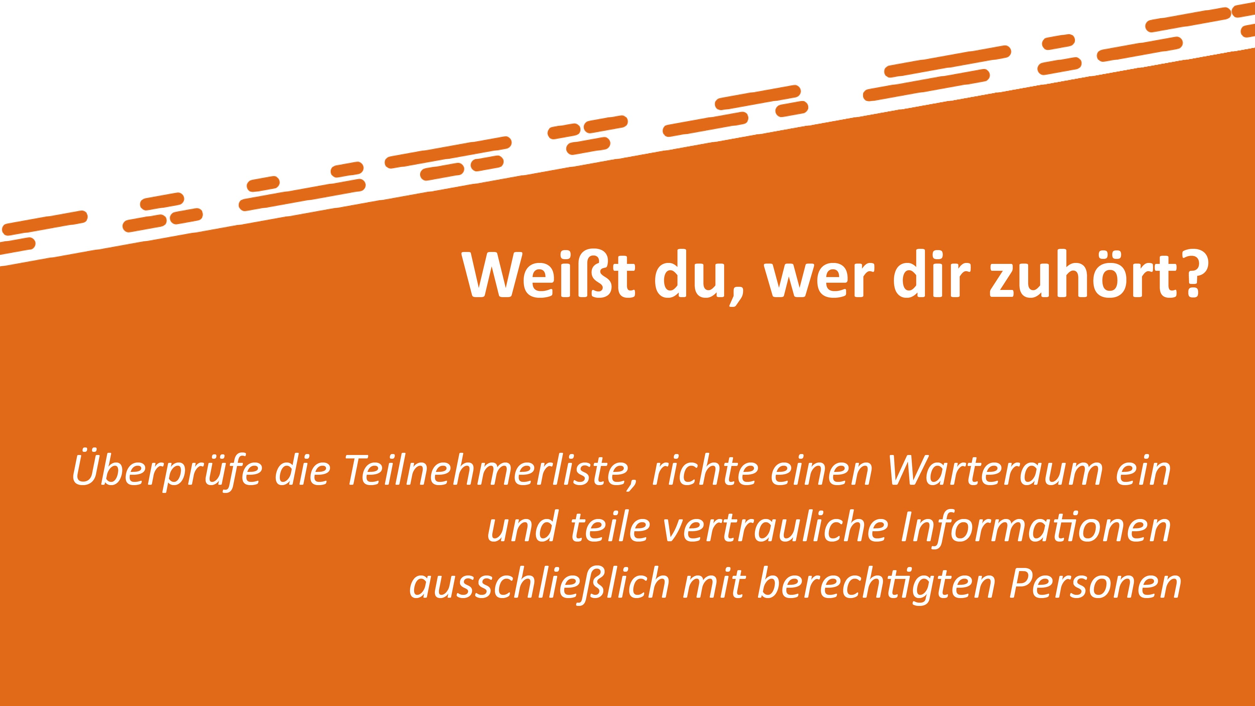 Überprüfe die Teilnehmerliste, richte einen Warteraum ein und teile vertrauliche Informationen ausschlißlich mit berechtigten Personen!
